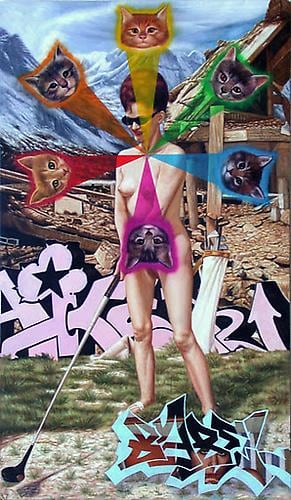 Britt Ehringer lives and works on a fifty-acre ranch nestled in the hills of San Bernardino Mountains near the town of Yucaipa, California, an hour East of Los Angeles. He does this because the paintings he makes require that he be sufficiently removed from the bustle of the city to be able to think clearly about what it all means. The clash between worlds, islands, chambers of marvels, biotopes and ideas - the subatomic weather of everyday life. To paraphrase Philip K. Dick, we live in a society in which spurious realities are manufactured by the media, by governments, by big corporations, by religious groups, political groups. Unceasingly we are bombarded with sophisticated pseudo-realities. In Ehringer's work he investigates the layers of perception in a search for what is real.
