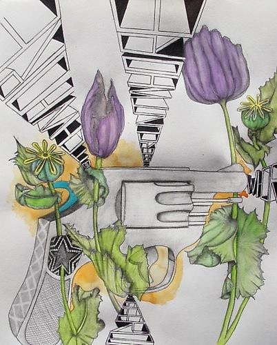 These together with her musical studies and interest in street art are all present in her oeuvre, which is at once abstract and humanistic.