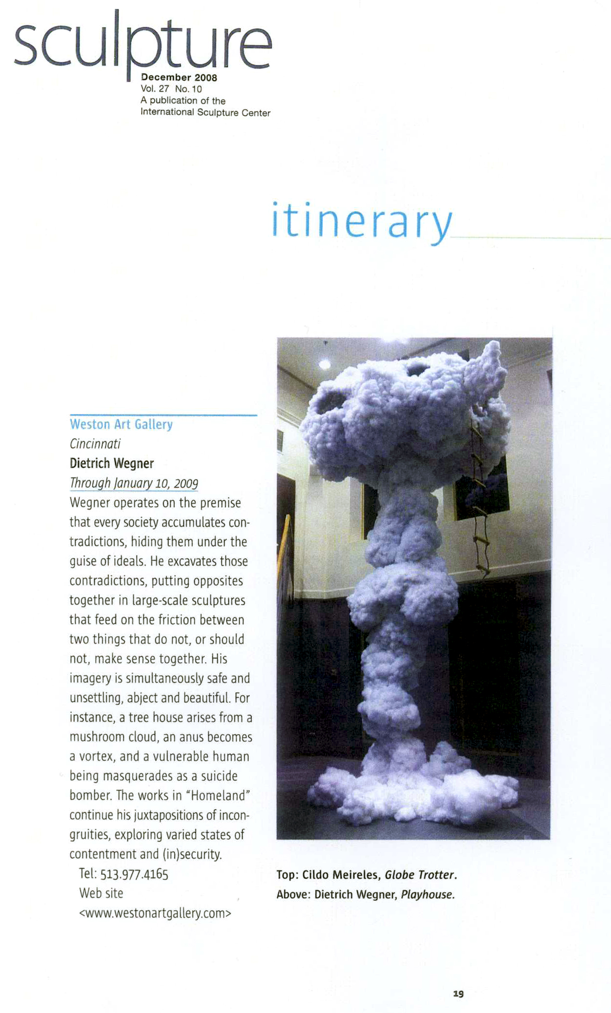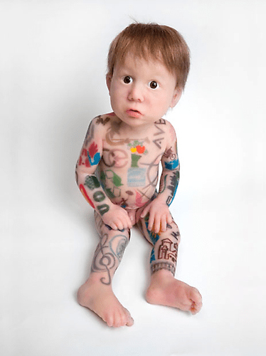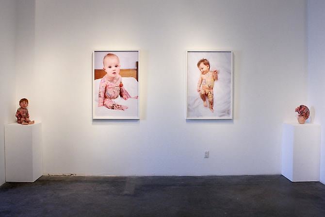 Every society accumulates contradictions amidst their ideals. Dietrich Wegner employs those contradictions, situating opposites together in sculpture and photography that feed on the friction between two conflicting ideas. When an image stands in limbo, between associations, it occupies a flexible place in our mind. Wegner creates images that are safe and unsettling, abject and beautiful. Some of his work shows us how a mushroom cloud can resemble a tree house, an anus a vortex, a suicide bomber a vulnerable human being, all in an effort to explore our varied states of contentment and security. In other works, such as in Cumulous Brand, babies are covered in multicolored tattoos in a meditation on how our identities evolve and how we declare them.