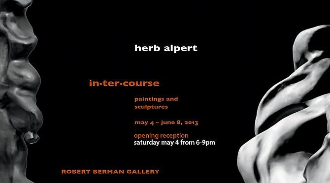 "in•ter•course" is a collection of Herb Alpert's newest paintings and sculptures on view at the ROBERT BERMAN GALLERY in the Bergamot Station Arts Center from May 4 – June 8, 2013. A video and catalogue will accompany the exhibit.
