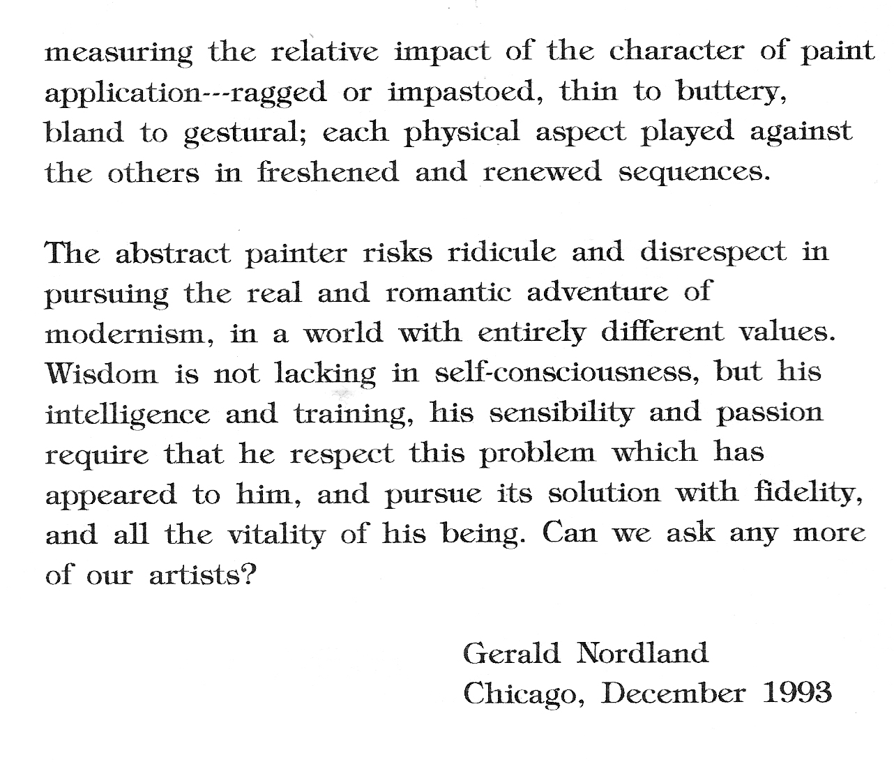 Norton Wisdom began his artistic life at fourteen when he attended Chouinard Art Institute in Los Angeles. A student of the luminous John Altoon (one of the preeminent artists of West Coast avant-gardism of the 50’s and 60’s), Wisdom was introduced, not only to the fundamentals of figure drawing, but also to the bold conceptual-based and humanistic thinking which would lay the groundwork for his future endeavors.