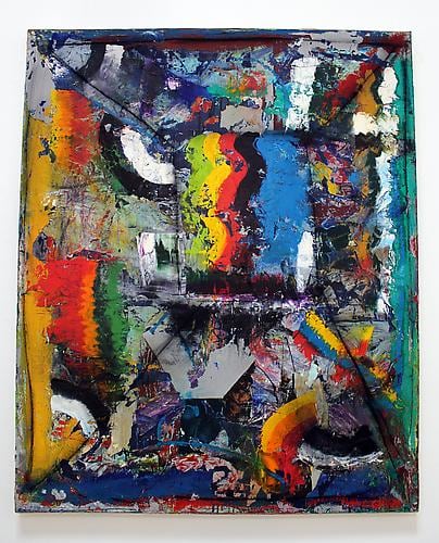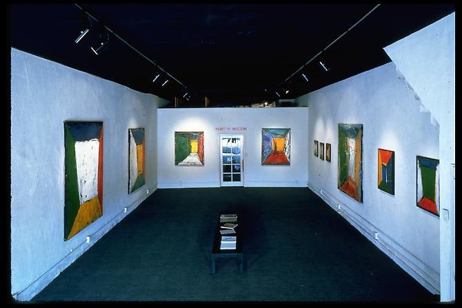 Wisdom first began exhibiting his own work in San Francisco in the 1970s but withdrew all of his work from galleries in 1974 and spent the following eight years immersed in studio work. That same year he became a lifeguard and the endless hours he spent staring out at the ocean while working on the beaches of Malibu, Topanga and Zuma contributed to his minimalist vision as a painter. In the late 1970s while in Germany for an exhibition, Wisdom painted over 150 meters of the East side of the Berlin wall during the night using searchlights to illuminate his work. He was subsequently arrested, detained and sent back to the U.S. but the experience convinced him that he could no longer work in the static studio environment and soon he began collaborating with punk bands and working in a performative style. Wisdom has been painting to live music ever since with bands like Panic and Banyan along with musicians Mike Watt and Stephen Perkins. His live, improvisational paintings are temporary interpretations of music that only exist during the space of the performance. The paintings are destroyed but a c-print of the piece resurfaces in remix collages mounted on canvas.