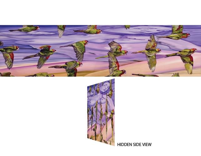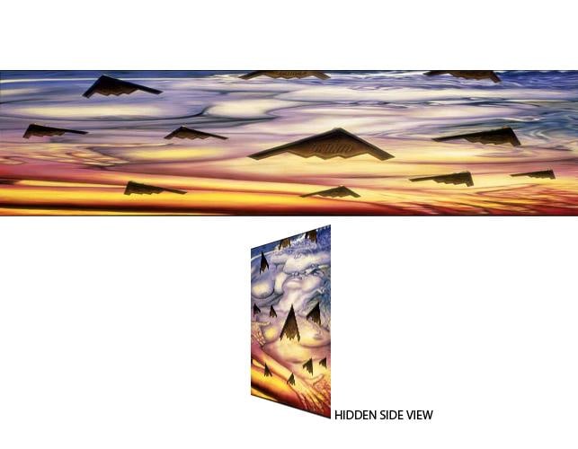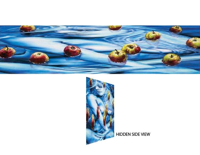 Why are these images trying to distract your attention? What is their purpose? Once you realize the deeper meaning you are able to see the dualities within the paintings. Then the art transforms into a provocative meshing of opposing ideas or dichotomies.Once the viewer experiences the hidden meaning, you can almost interact with the work. It will spark curiosity or controversy in anyone who uncovers the secret.