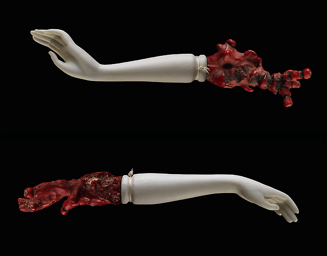 “Nearly twenty years ago I bought a piece from Sarah Danays from the Adam gallery in London. While it is now defunct her work – Billy remains in my collection and sadly while a bit moth eaten – it still retains its punch. The work part of a show called Child Crime features a large photo of a 1950’s British lad with a slingshot. He wears a grey sweater that Danays had reproduced and which stands near by the image. It is a strong work that reflects how we see children and violence and with the memory of Sandy Hook so fresh in our minds it is more relevant than ever.”