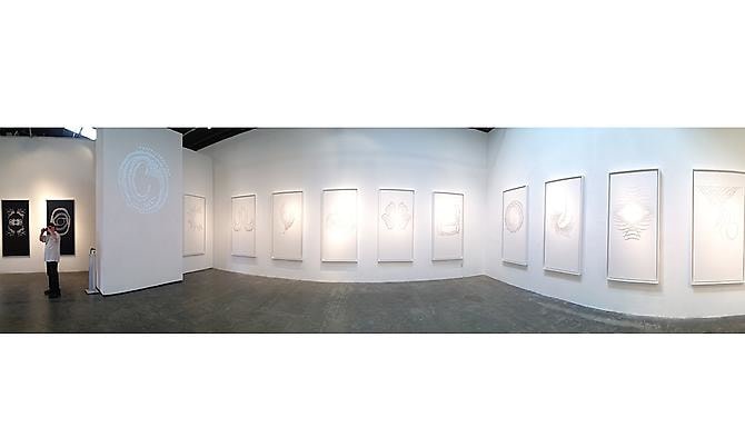 Balancing poetry and precision, "In Light" presents a multimedia web of bright energy. Photography sets the scene with glimpses of urban ethereality. Large scale lumenographic prints, entrancing animated projections and delicate hand drawings capture the familiar substance and deeper mystery of light. Lead glass sculptures and a mobile array of handcrafted LED projectors engineered by Crowell's creative partner, Chas Curtis, evoke light in motion