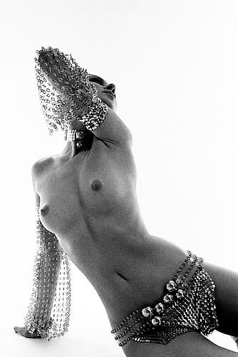 Clemmer, who had become one of the most noted erotic photographers of his day, moved forward with Rabanne on the project Canned Candies featuring female nudes modeling the jewelry and costumes of Rabanne. This project became the book Nues, embracing a fusion of the most influential aspects of the 1960's; a fascination with futurism and sensuality. Futurism's sensibility of space travel manifested itself in Nues into an exotica of metal while sensuality and the sexual revolution it encouraged was celebrated in the book's uninhibited presentation of the female form. However, what made the book Nues a true catalyst of its era was accomplished by its paradigm shift of the idealization of female beauty. Clemmer and Rabanne chose women of varying races personifying them equally in a new mythic stature.