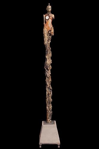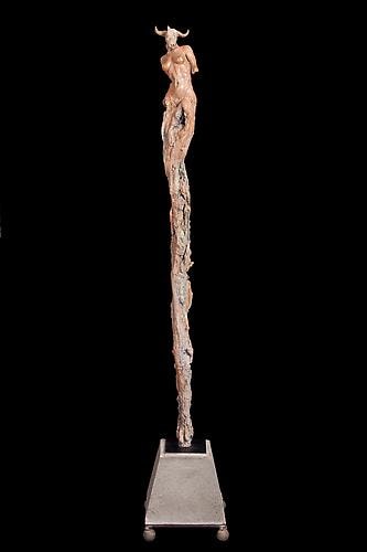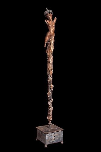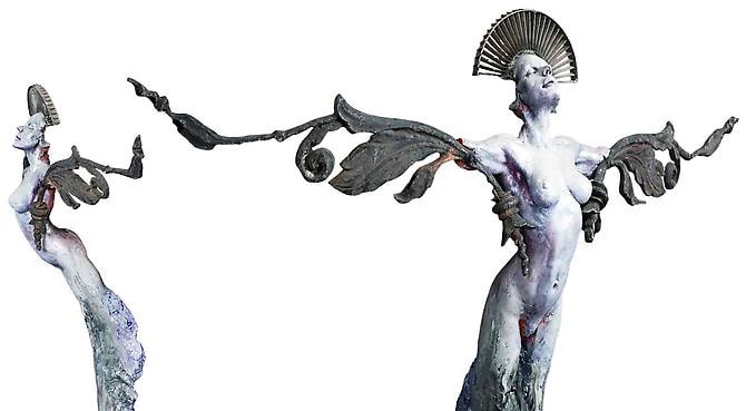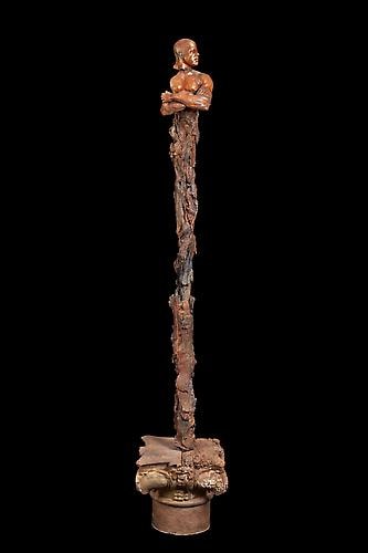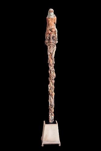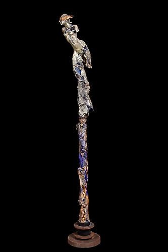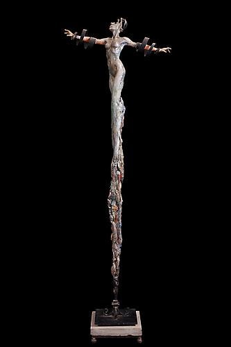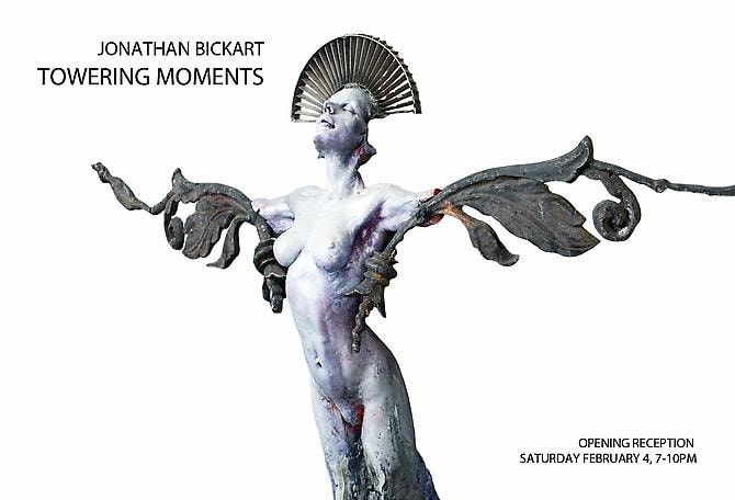TOWERING MOMENTS captures a compelling moment in the artist/muse relationship, exhibiting the creation of surrealistic icons of gesture through human form. Inspired by images of Javier Marin, Egon Schiele, and Rodin. "I try to incorporate the artist/muse relationship symbolically with figurative surrealism through optical illusion, distortion, and an expressionist style." Through these sculptures, Bickart attempts to fuse our subconscious visuals with our aesthetic sensibilities. Bickart's work includes the use of many materials, such as polychromed terracotta, steel, concrete, hydrocal, brass, and well as found objects.