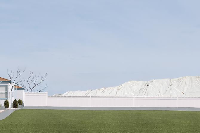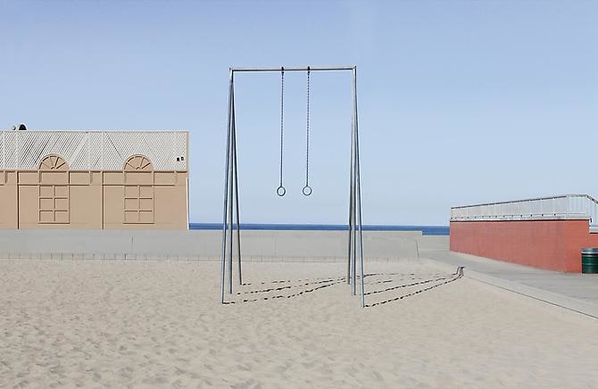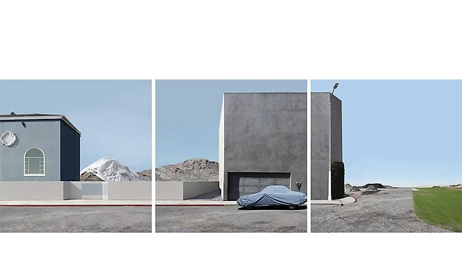 Unlike traditional photography, which seizes an instant of reality, her images are constructed from photographs taken in various locations over the course of several months, then layered and blended until the real and the fabricated become a seamless composition whose verisimilitude prompts the viewer to question the nature of both the medium and its content.