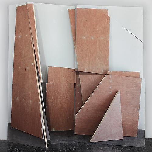 In his new exhibition “Contenant Contenu” (Containing, Contained…) Marc Fichou offers a cross-medium exploration of a loop connecting two versions of the same object in space and time, one containing the other. In “8×8″, a sheet of wood has been divided into pieces to form a temporary three dimensional arrangement, which after being photographed in the gallery is put back into its original 2D shape to become the support of its own image. The exhibition space is now perceived as both containing the piece and contained by it.