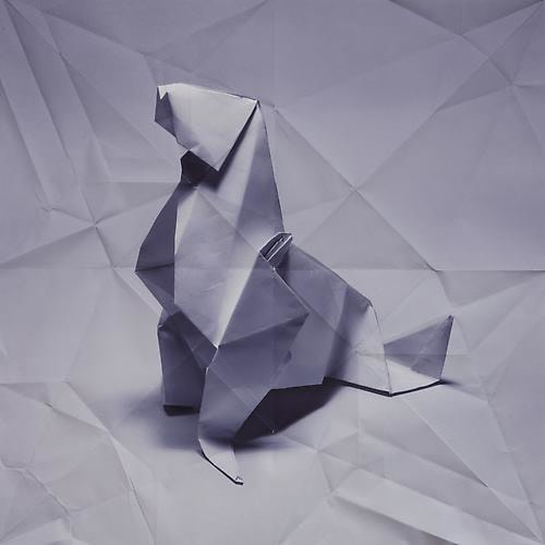In the series entitled “Paper on paper“, the image of an animal made of folded paper is superimposed on the folds that led to its creation. Origami and paper are one and the same thing at two different times, in two different spaces and in two different shapes. The final piece is an unfolded print where folds in the picture blend with the actual folds, thus establishing a continuity between image and matter.