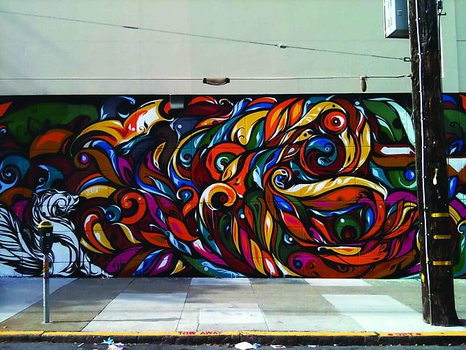 Robert Berman / E6 Gallery is pleased to present MISSPELLED, an alphabet by Victor Reyes, handmade in California. The ambitious public art installation turned gallery exhibition explores the artists’ unique approach to graffiti, by dissecting individual letters and exploring the anatomy and architecture found in the symbols we use to communicate. Inspired by San Francisco’s streets, surfaces, and overall visual vibrancy, Reyes reinterprets the letters and presents them to us in a brilliant array of color and movement. These alphabets, recontextualized on various abandoned surfaces around the city, are not intended to provide answers, but to raise questions about how we interpret public spaces and the content assumed within.