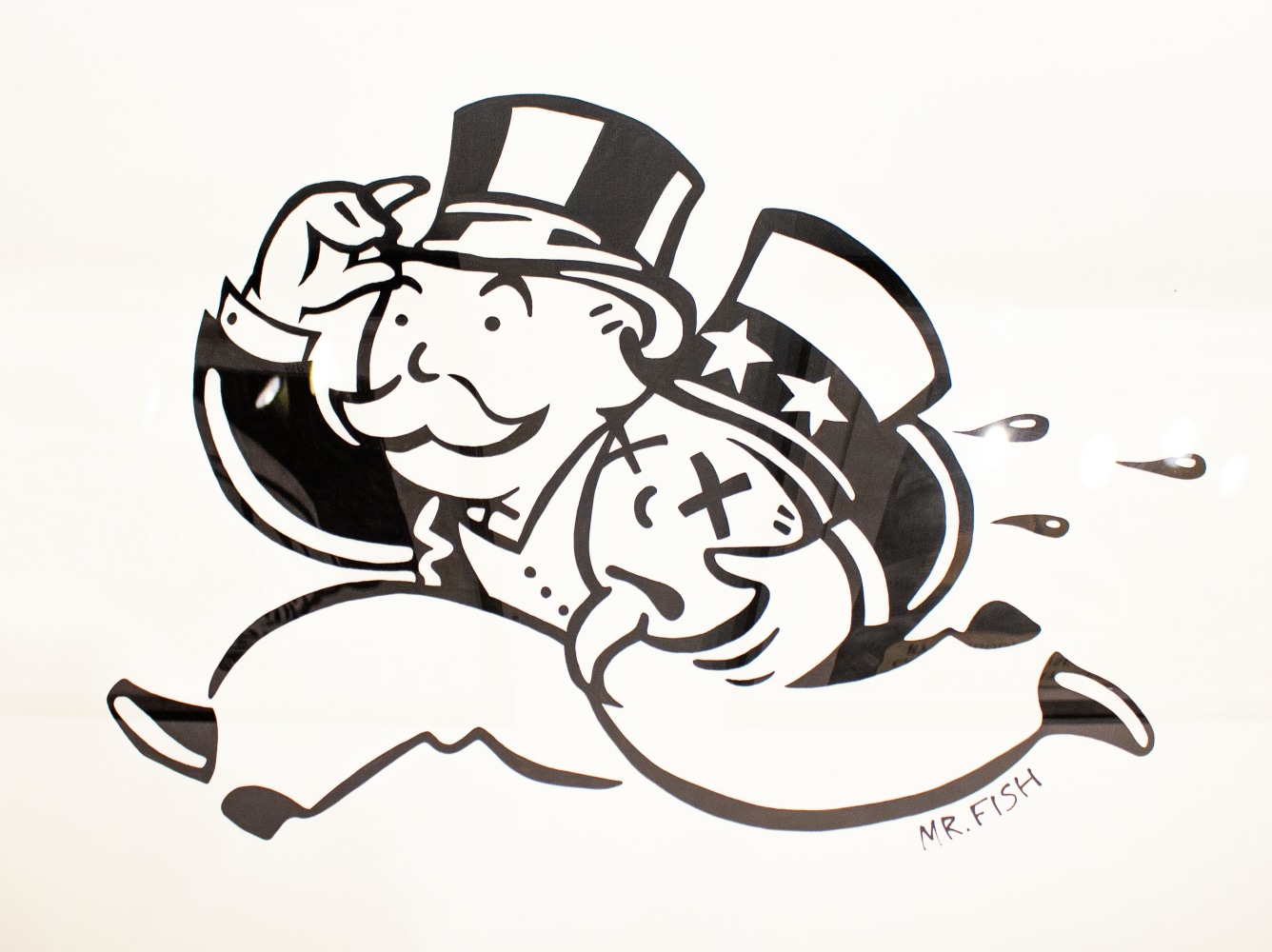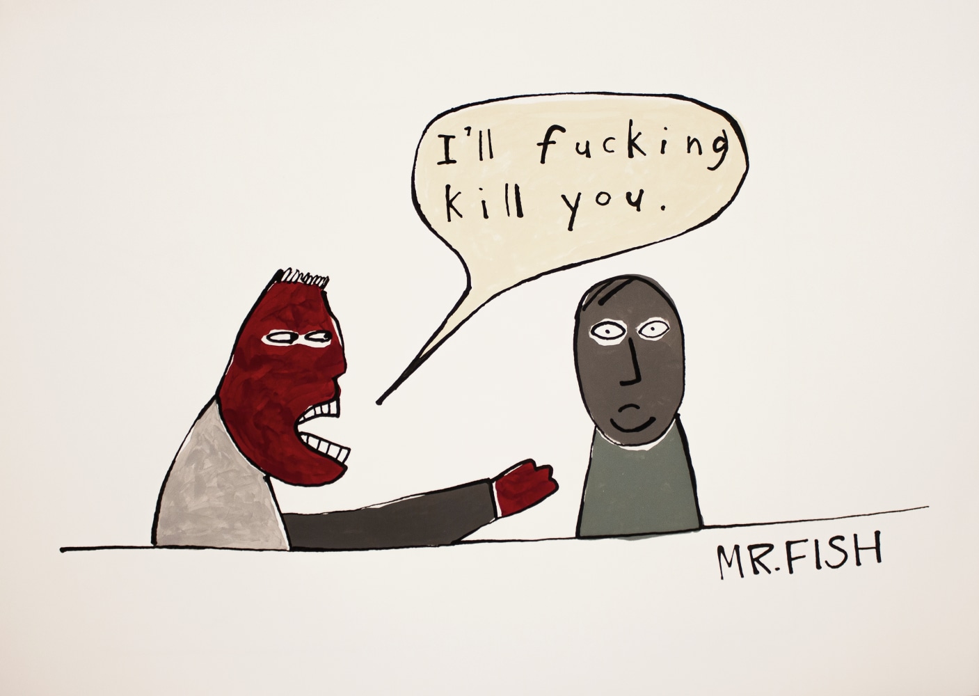 Opening this Saturday afternoon, we are proud to present new works and favorite hits from the satirical mind of one of America’s most prolific and original social commentators, Dwayne Booth AKA Mr. Fish. Saturday February 19th from 4-7pm join us and other galleries as a an extension to the art happenings around the city of Los Angeles this weekend.