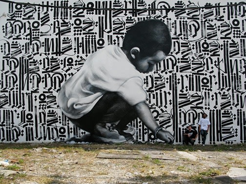 The exhibit also serves as a retrospective, showcasing individual work from each artist before and after they met, as well as brand new pieces that demonstrate their maturation. “I think that our development as individual artists has made our collaborative work that much stronger and more unique,” Mac explains. Mac will show his extremely technical photorealistic canvases, while Retna plans to create a floor-to-ceiling installation of his calligraphic font.