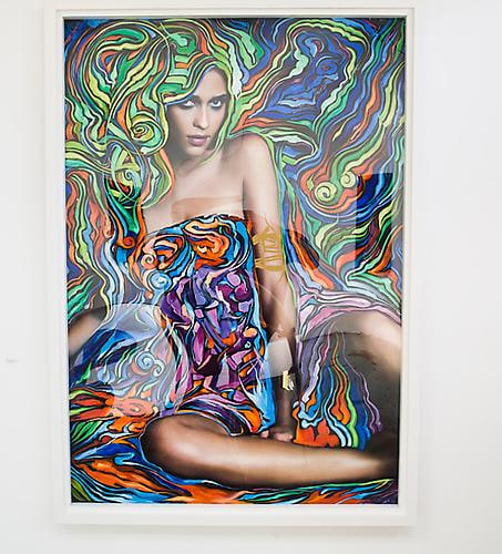 Vagos y Reinas brings their outdoor work inside. The title of the show, which translates to “vagrants and queens,” references Mac and Retna’s street-infused styles and celestial depictions of women. On exhibit are large-scale pieces that represent some of their best work together. For example, with “Gracias a la Vida,” an 11-by-11-foot canvas, Mac and Retna exalt a photo of a beautiful woman into a divine being. It is a perfect example of their use of graffiti and fine art, combining spray paint with Alphonse Mucha’s whiplash curves, motifs pulled from Byzantine art, and a powerful image that recalls Gustav Klimt.