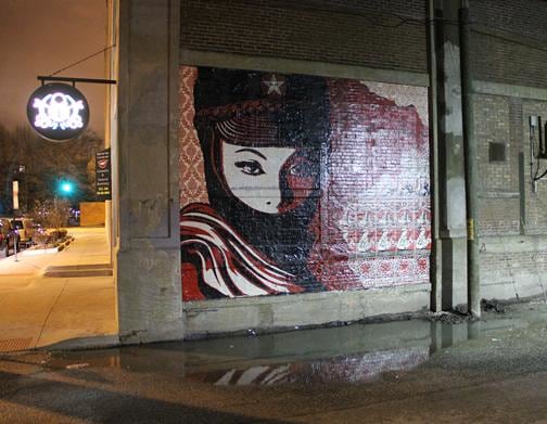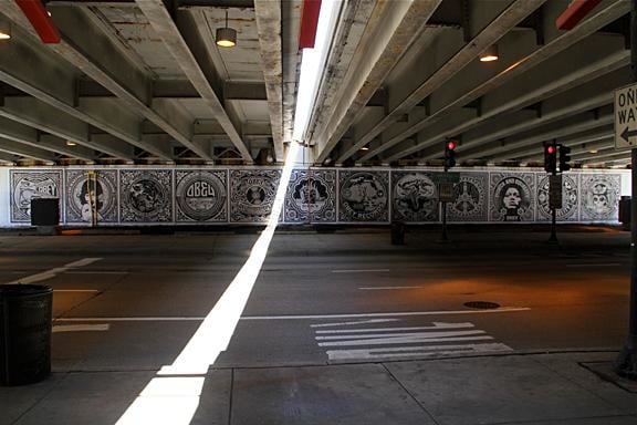 As part of the Navy Pier Walk 2011 art exhibition, Fairey has created a giant poster mural for the Lake Shore Drive viaduct at Grand Avenue. Measuring 130 by 10 feet, the "Obey" mural features a string of album-coverlike works. It is Fairey's first such installation in Chicago and will remain at the site through October.