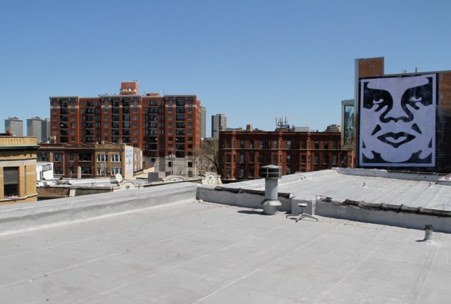 Shepard Fairey, the artist best known for his Barack Obama "Hope" poster in 2008, is leaving his mark near Chicago's lakefront.