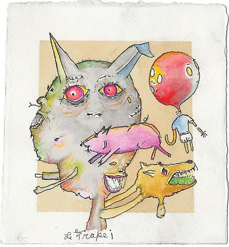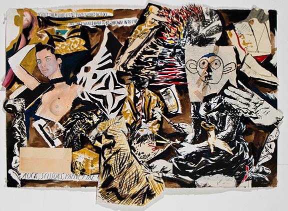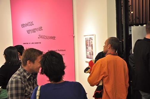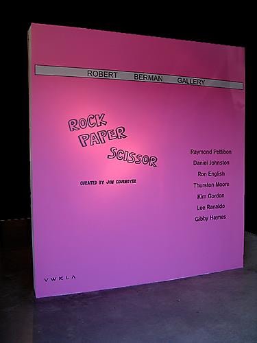 Robert Berman Gallery is pleased to present the group exhibition Rock, Paper, Scissor on view February 28 – March 21, 2009. The show features noteworthy artists who freely use, base imagery on, thrive, and excel in both the mediums of visual art and music. The artists taking part in the show are Raymond Pettibon, Daniel Johnston, Ron English, Gibby Haynes of the Butthole Surfers and Thurston Moore, Kim Gordon and Lee Ranaldo of Sonic Youth.