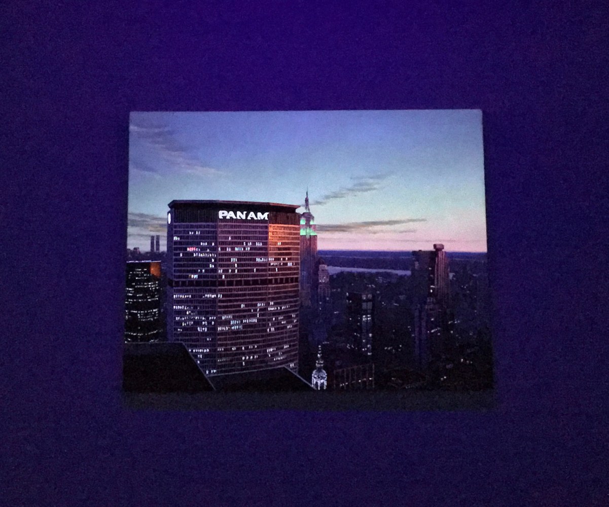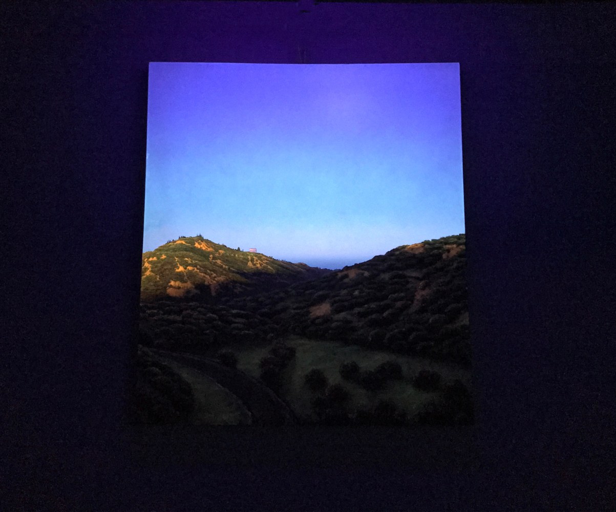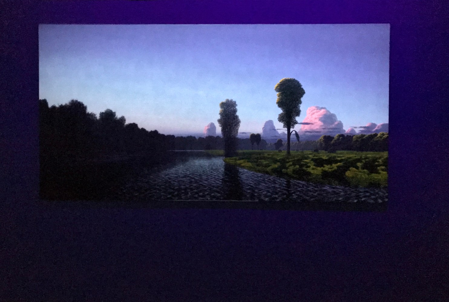 Works on exhibition to feature unique canvas works created with phosphorescent pigements, which when revealed with a black light show an illuminated scene of landscapes, buildings, and the Hudson River.