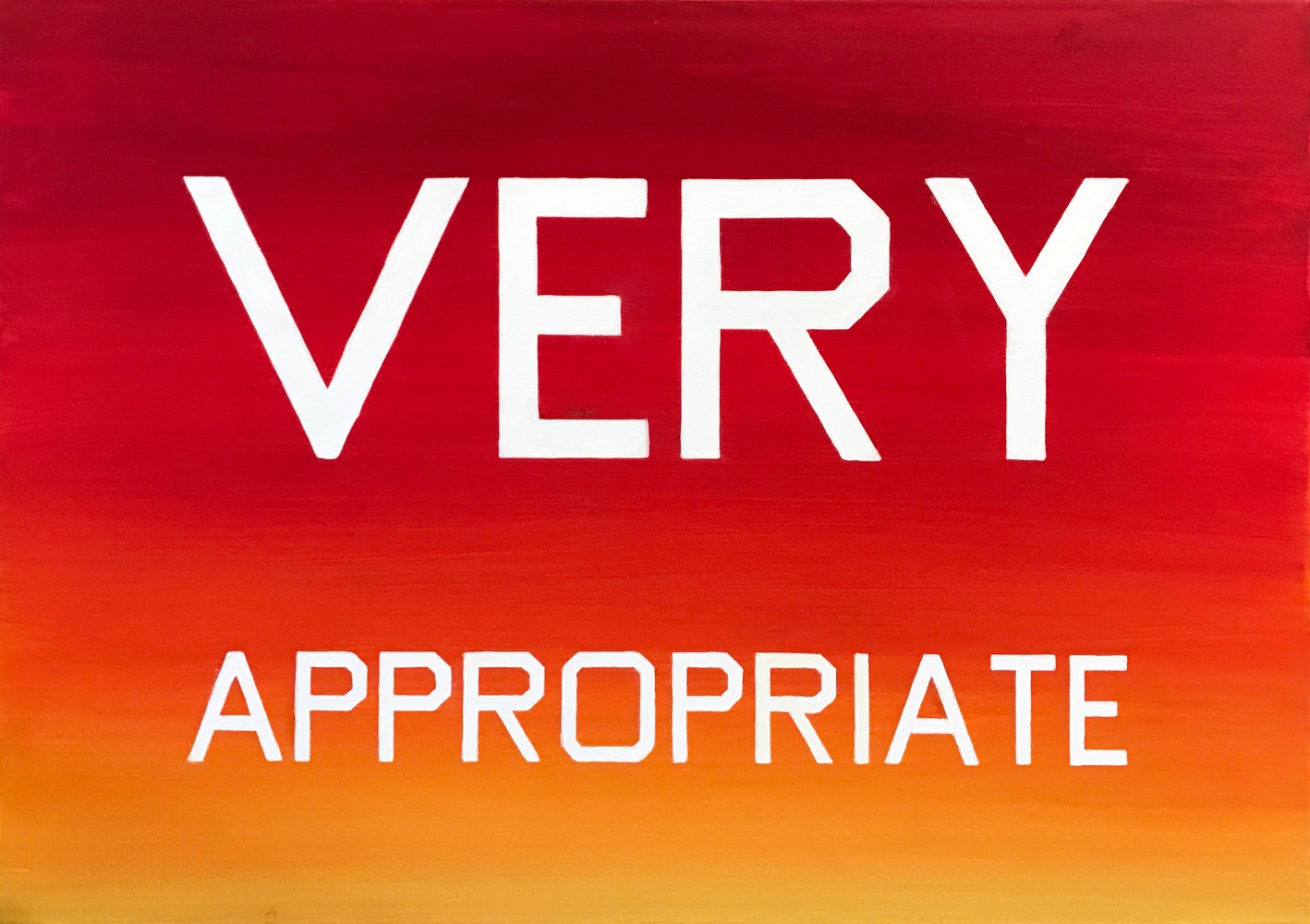 A new Film by Eric Minh Swenson ROBERT BERMAN GALLERY is pleased to present VERY APPROPRIATE, a group exhibition of artists who use Appropriation of established art and imagery as a base for their interpretations and manipulations. This exhibition features the far and wide, repeated, mundane, everyday images from popular culture that are now tightly woven into our Modern Art History.