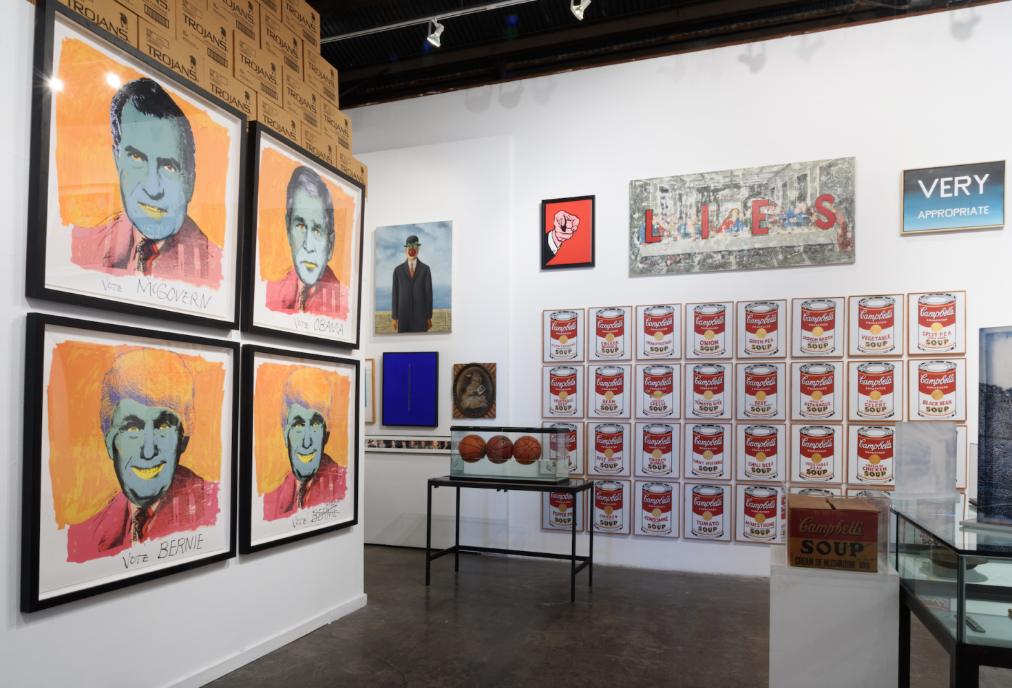 Appropriation in art and art history refers to the practice of artists using pre-existing objects or images in their art with little transformation of the original. The most historic known examples of appropriation vary from Warhol's infamous soup cans to a urinal found object by Marcel Duchamp to the illustrative Standard Stations by Ed Ruscha - all works have been exhibited, filmed, and countlessly written about in the world of art and Appropriation. These historical works are re-visited here, in Very Appropriate, by countless artists from the contemporary realm of Appropriation. The exhibition is boundless in media, featuring works in ceramics, photography, paint and found objects (coat hangers, basketballs, urinals and the like).