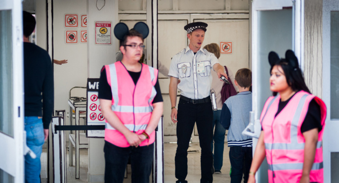 Dismaland is the latest innovation in family light entertainment by the graffiti artist Banksy. Installed in the centre of an unfashionable British seaside town frequented by low-income families, Banksy describes it as “the perfect art audience.” The location is a former lido comprising four acres of walled seafront compound, which in recent years has come to more closely resemble a neglected prison yard, an atmosphere Banksy has endeavoured to preserve by declaring that none of the installation crew were allowed to bring a broom.